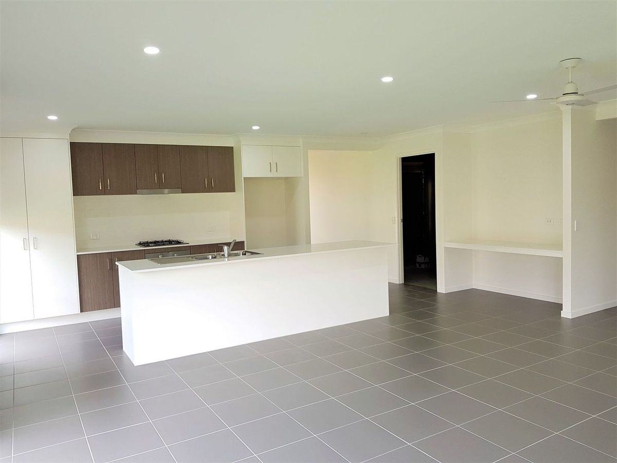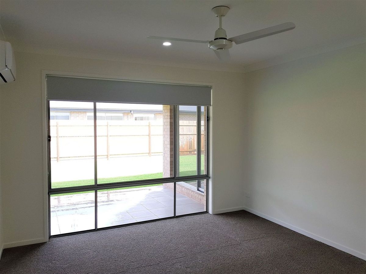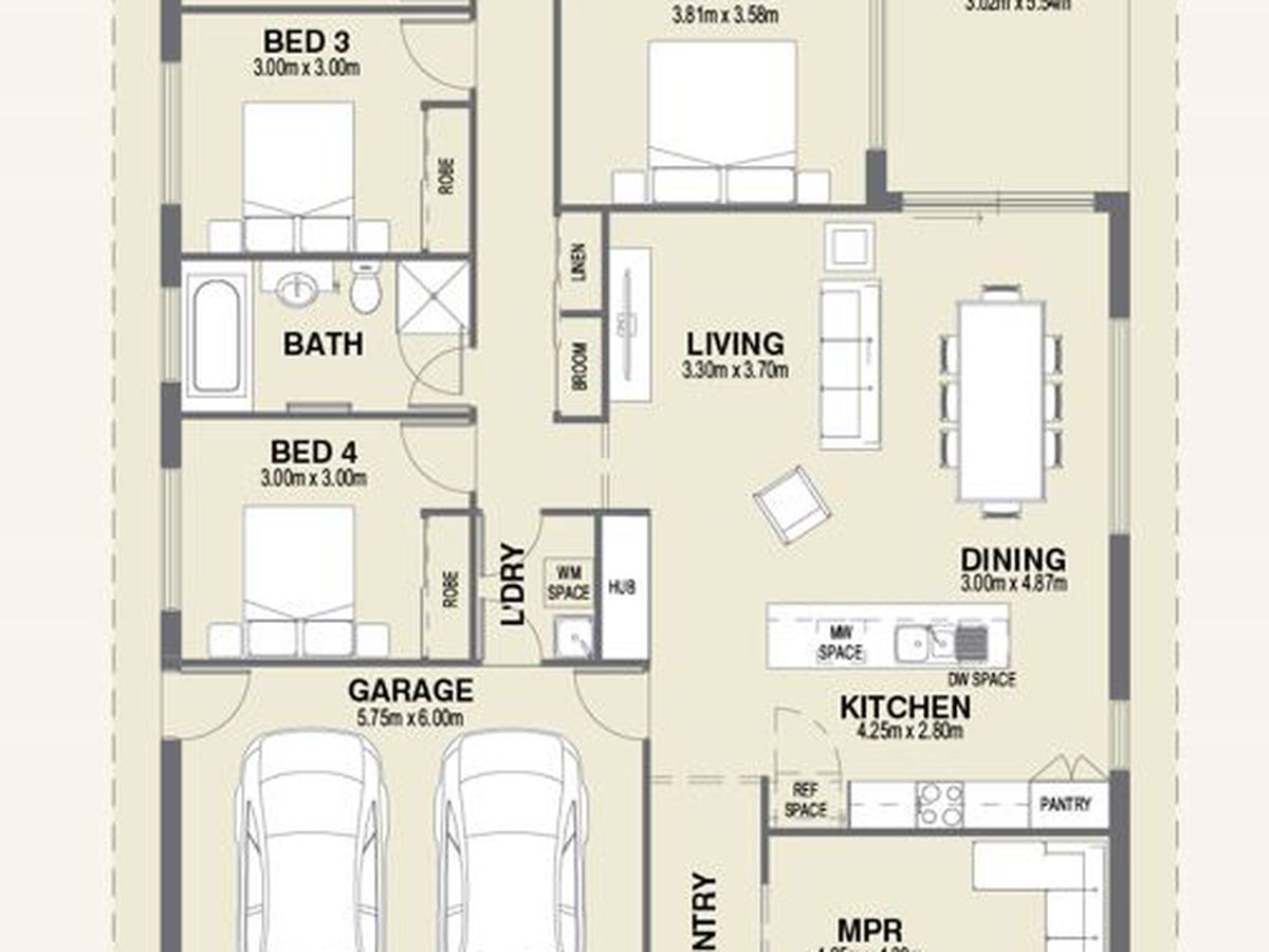 A separate media or multi-purpose room is located at the front of the house. The kitchen is equipped with quality stainless steel appliances, a dishwasher, and an island stone benchtop. The open-plan living and dining areas seamlessly flow into a large, fully tiled covered outdoor entertaining area, perfect for relaxing or hosting guests.